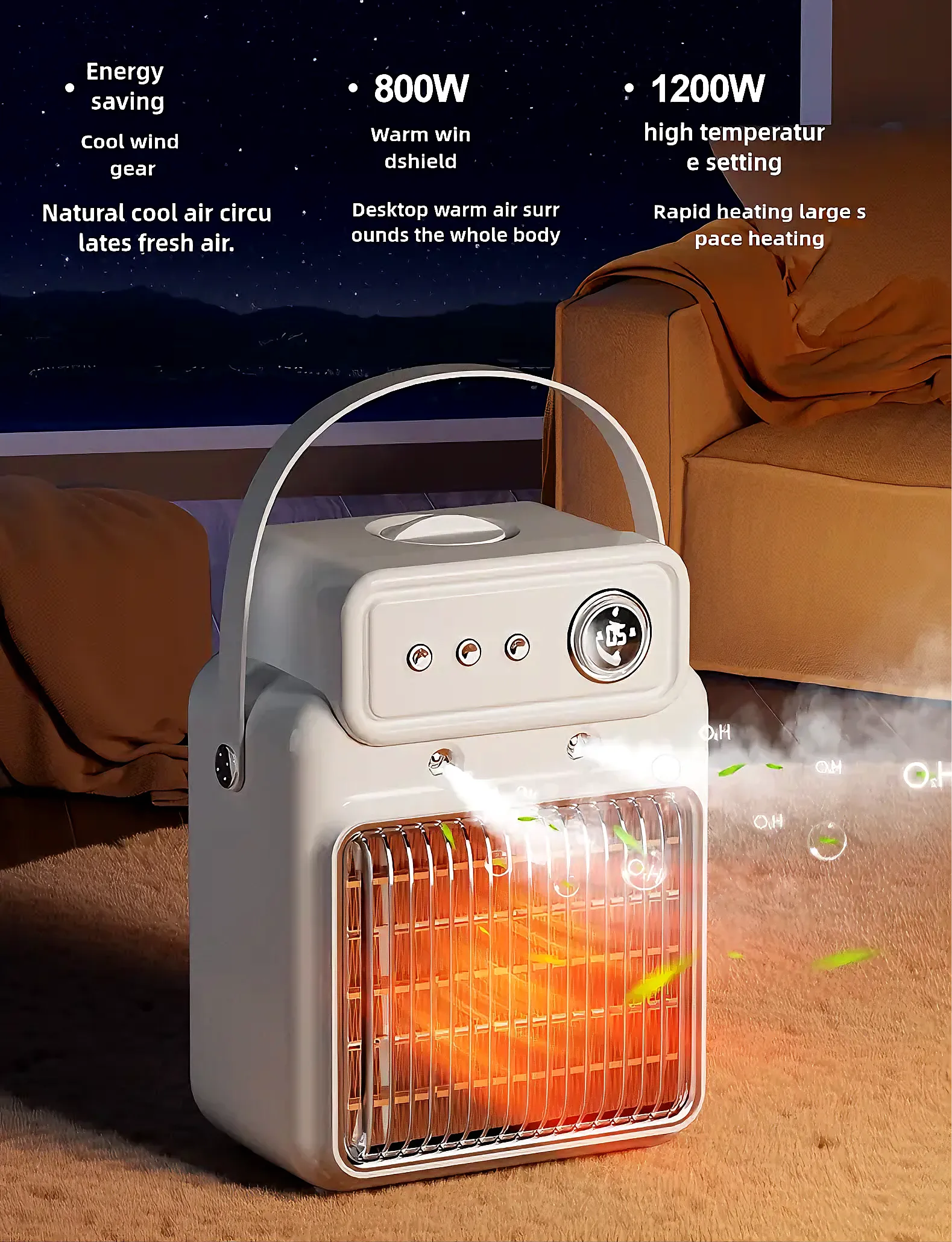 Tre justerbara nivåer: sval luft, 800 W och 1200 W. Växla enkelt mellan kyla och värme – en maskin för komfort hela året.