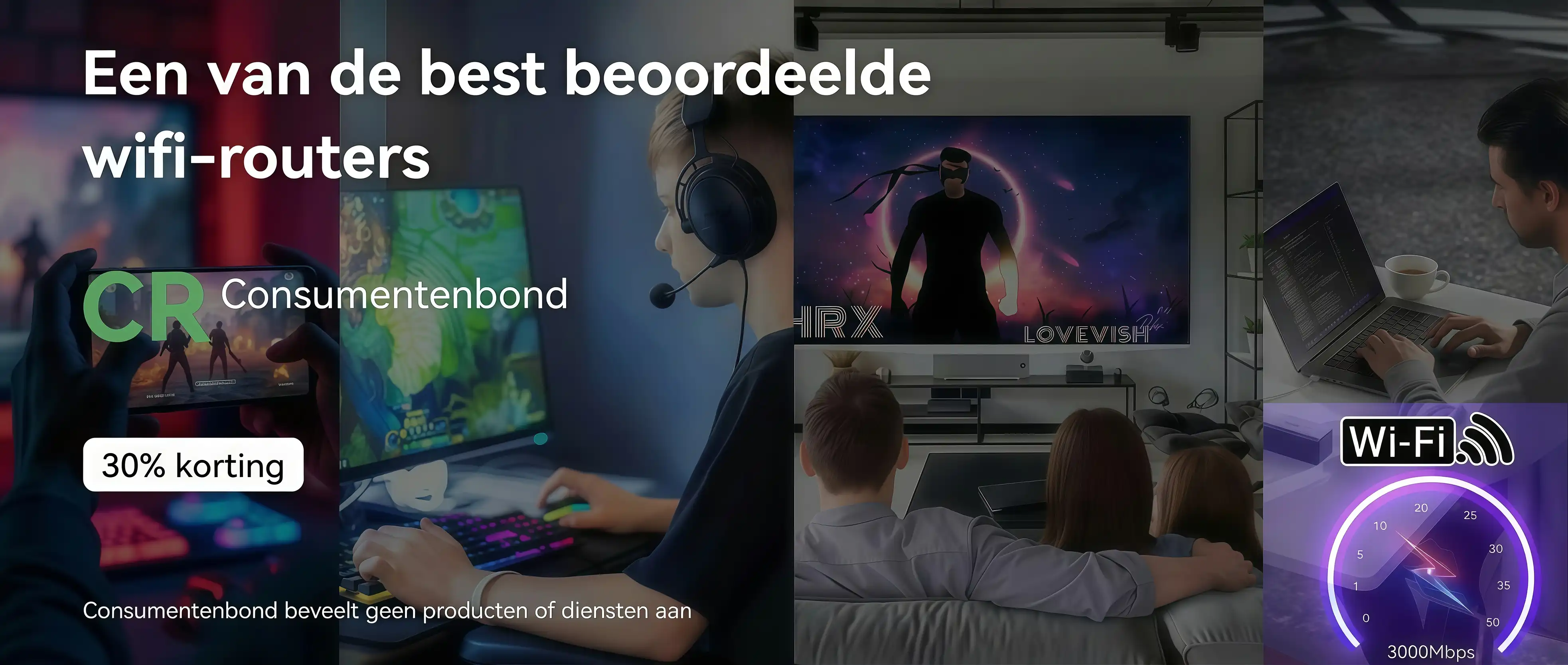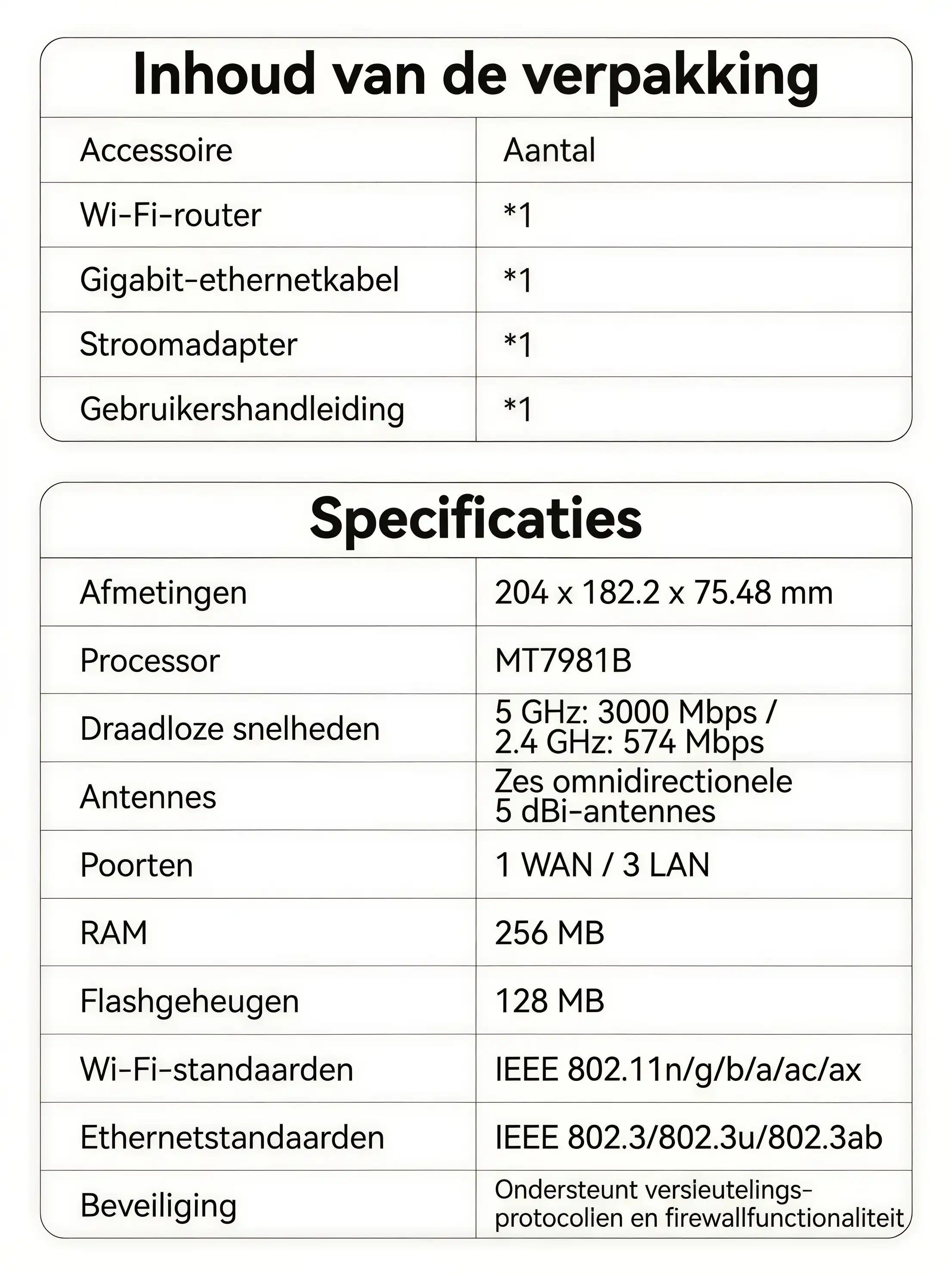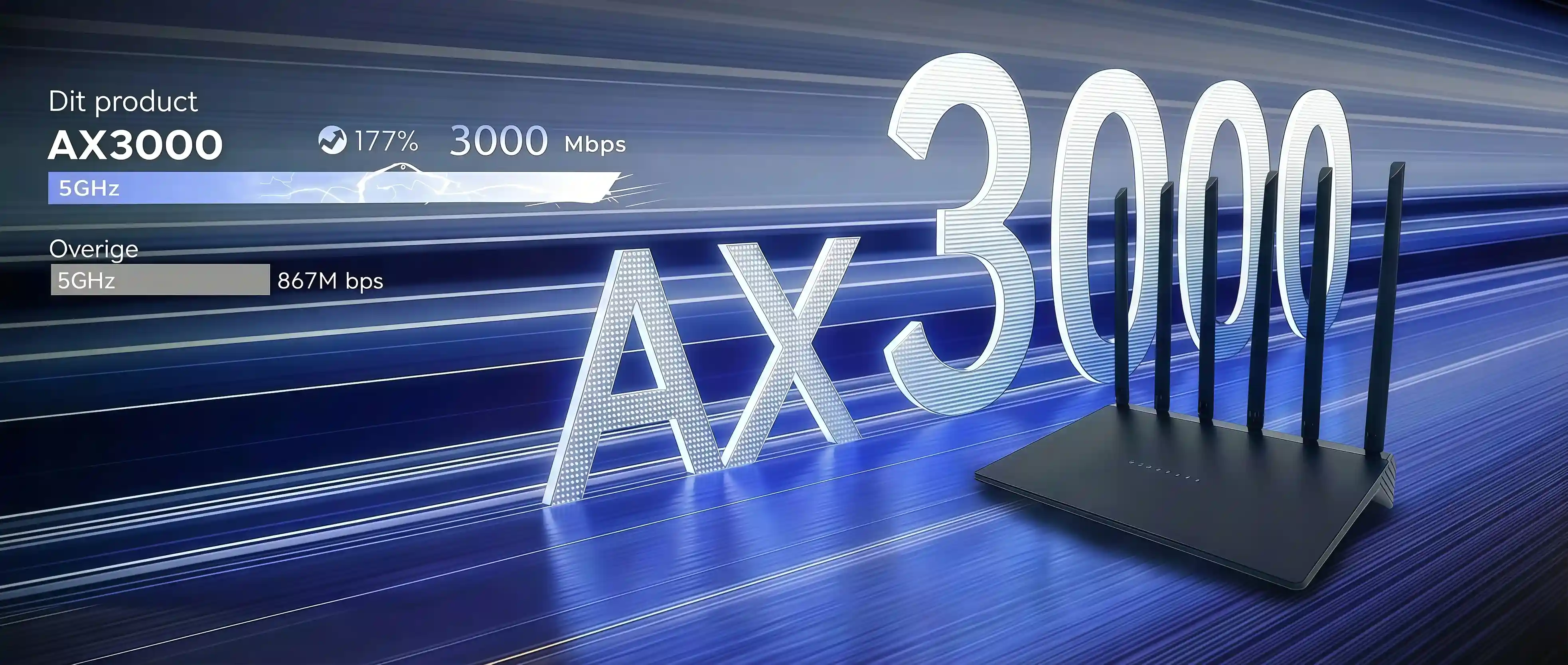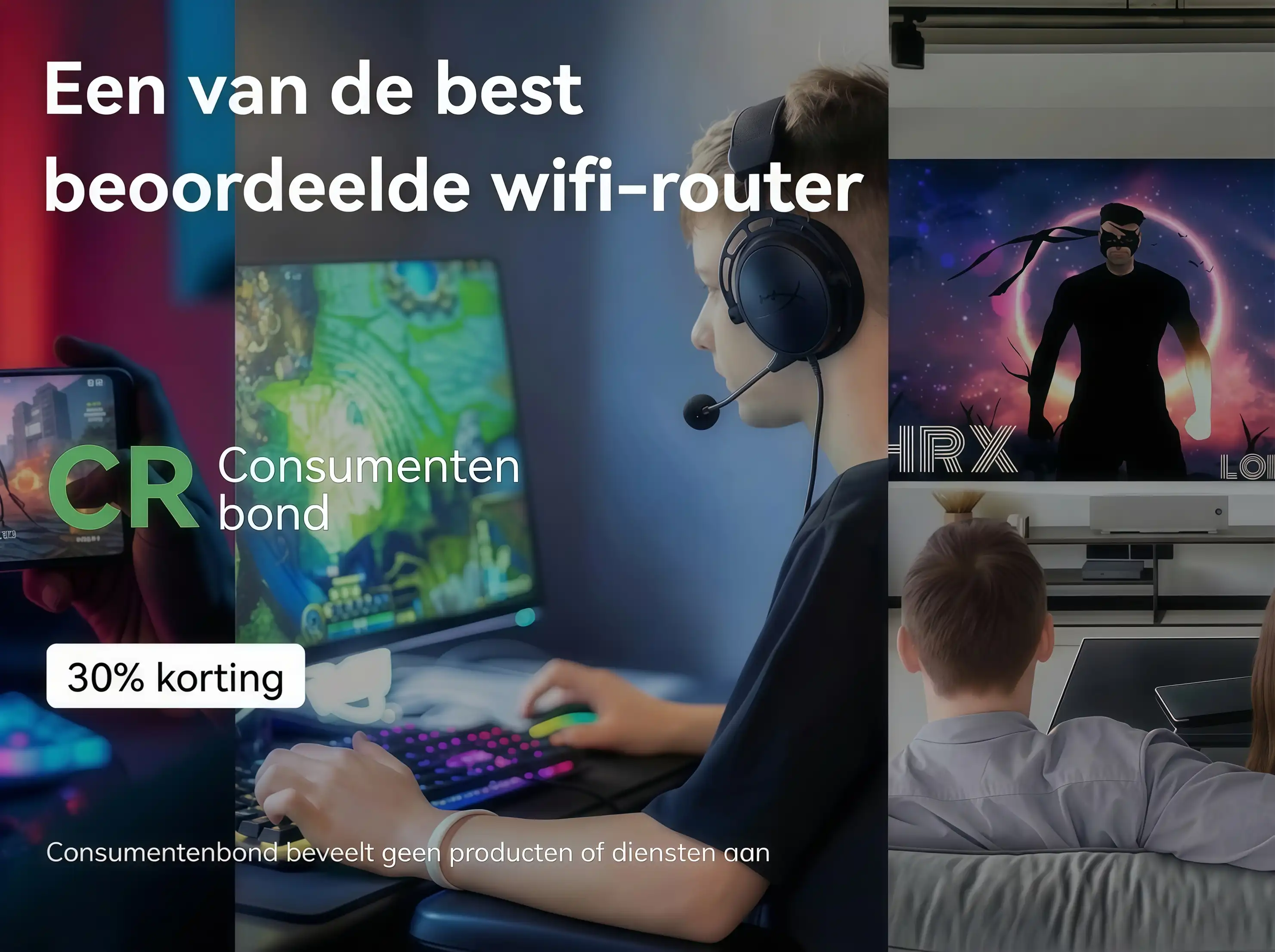 Dual-band Wi-Fi 6: Snelheden tot 3000 Mbit/s – 67% sneller dan standaardrouters.