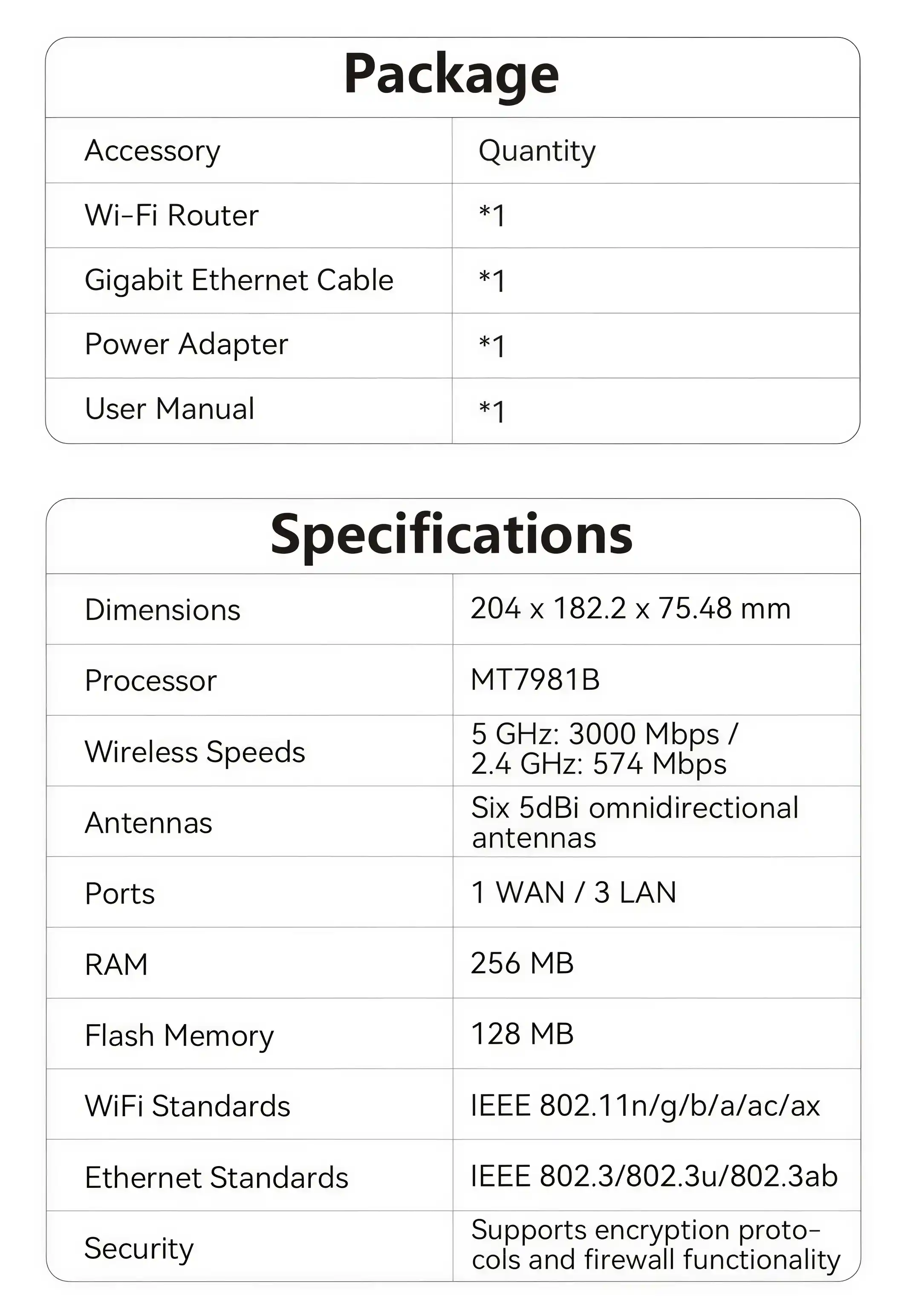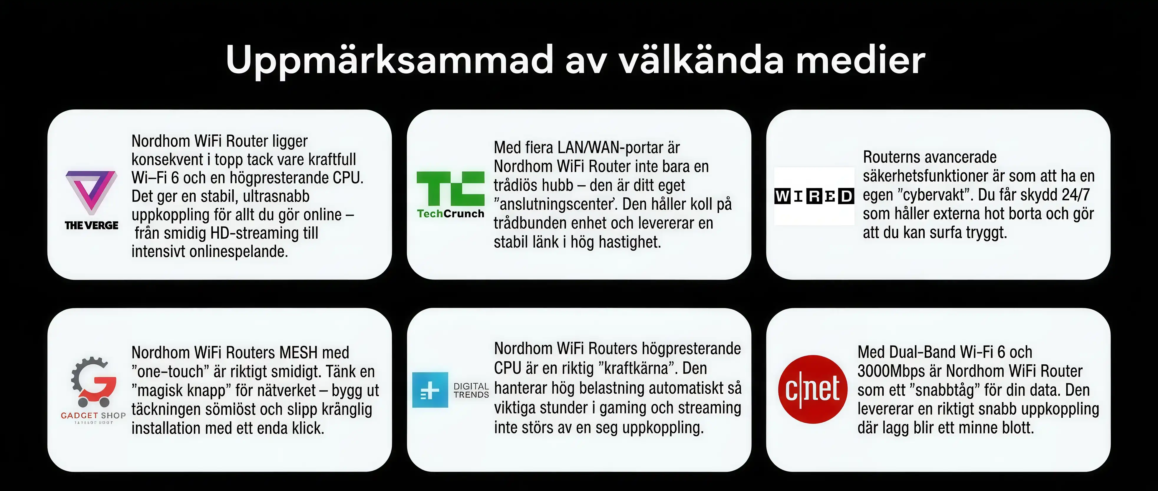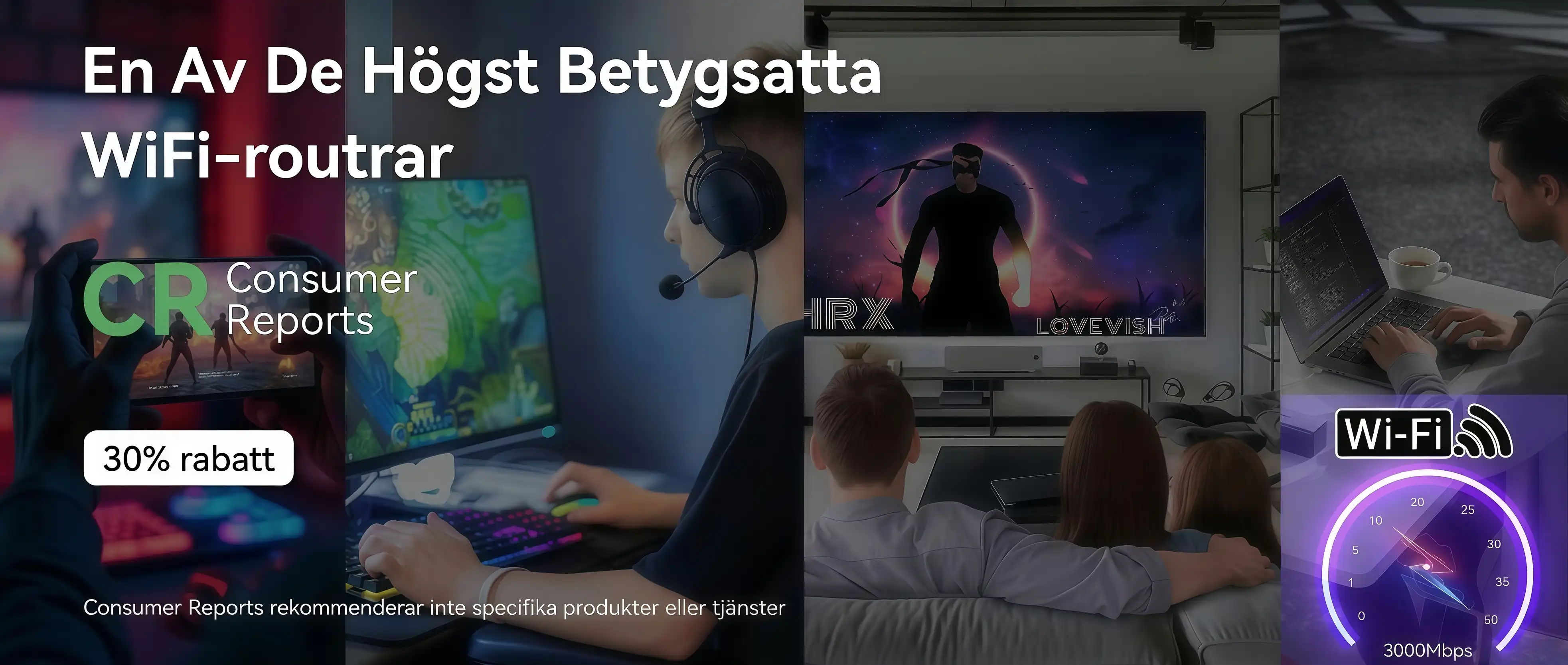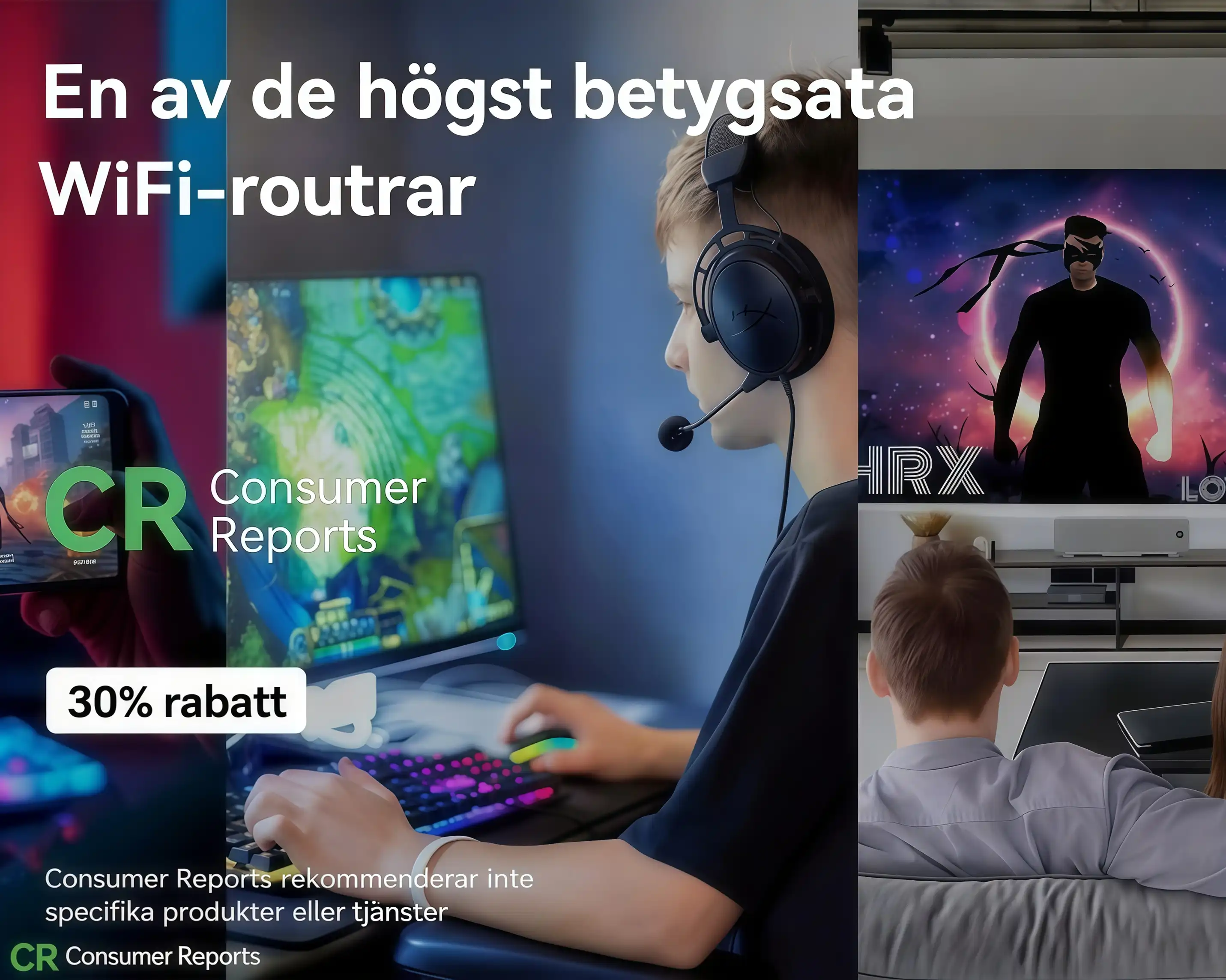Dual-band Wi‑Fi 6: Njut av hastigheter upp till 3000 Mbit/s – 67 % snabbare än standardroutrar.