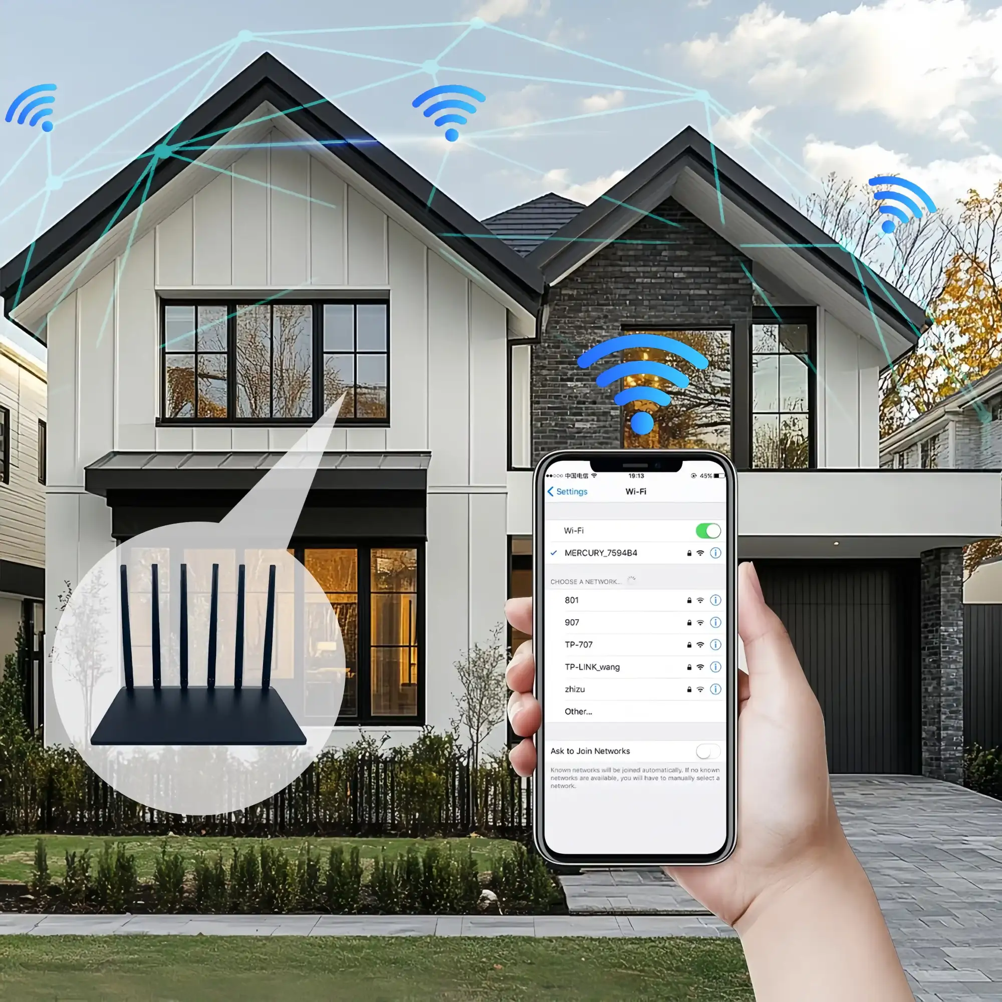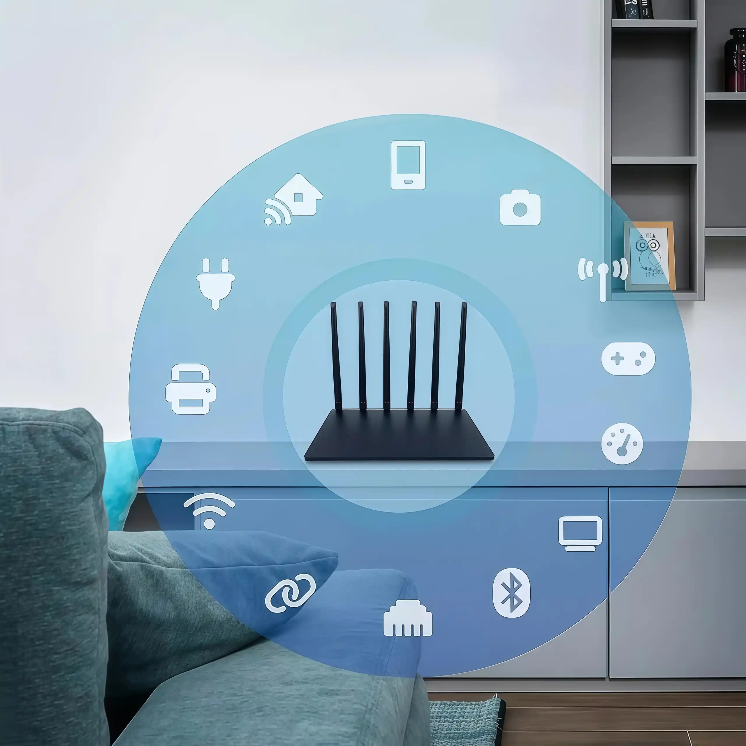 Täckning i hela hemmet: Sex antenner med OFDMA och MU‑MIMO ger stark signal för upp till 128 enheter.